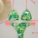 Bikini triangulito, less, floreada con detalle de frunce en lateral de bombacha y tasas removibles.