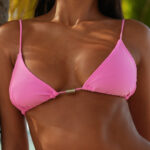 Bikini triangulito, semiless, combinada con detalle de frunce en lateral de bombacha y tasas removibles.